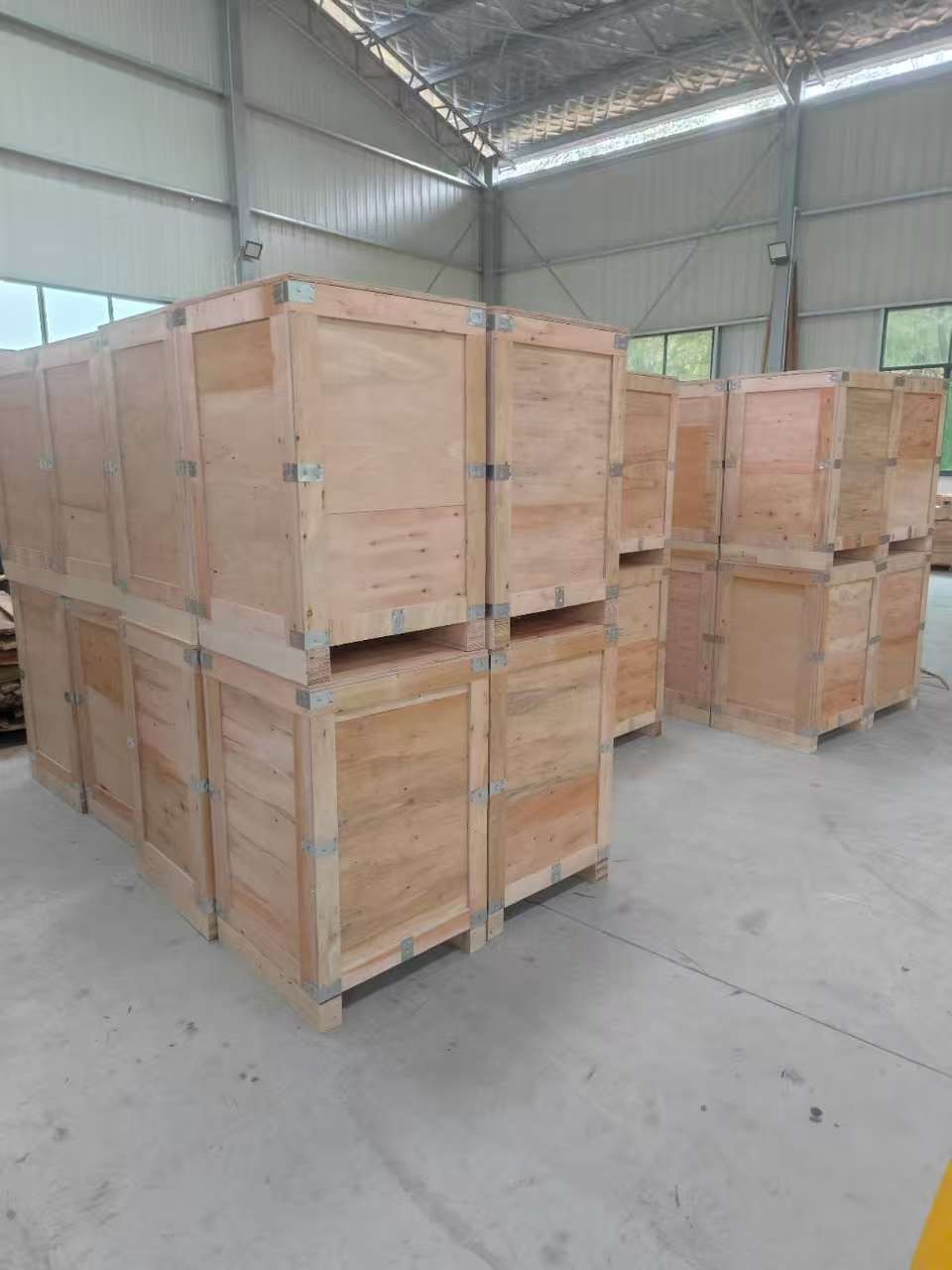 木箱:用木材、竹材或木质混合材料制成的胶质直方体包装容器。